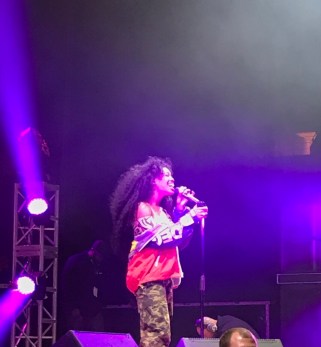 SZA walked on stage and the crowd went wild. The voice recording intro to her Ctrl hit, “Supermodel” played while fans screamed along the words. Big hair, camo pants, and a tiny off the shoulder top that kept exposing her chest made up the litte SZA; a dynamo in her own right. Playing all the favorites off her explosive album, Ctrl, left fans smiling and screaming for almost an hour. The singer addressed the crowd a handful of times, talking about her admiration for students getting their degree and trying hard to succeed. Admitting her stoner ways before singing “Drew Barrymore” and intro-ing the Kendrick Lamar-assisted “Doves In the Wind” by explicitly saying, “I wanna talk about pussy.”
